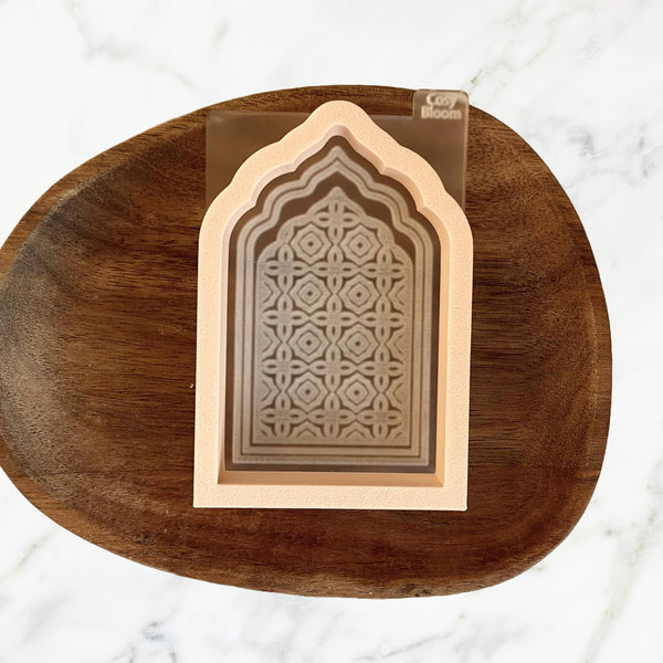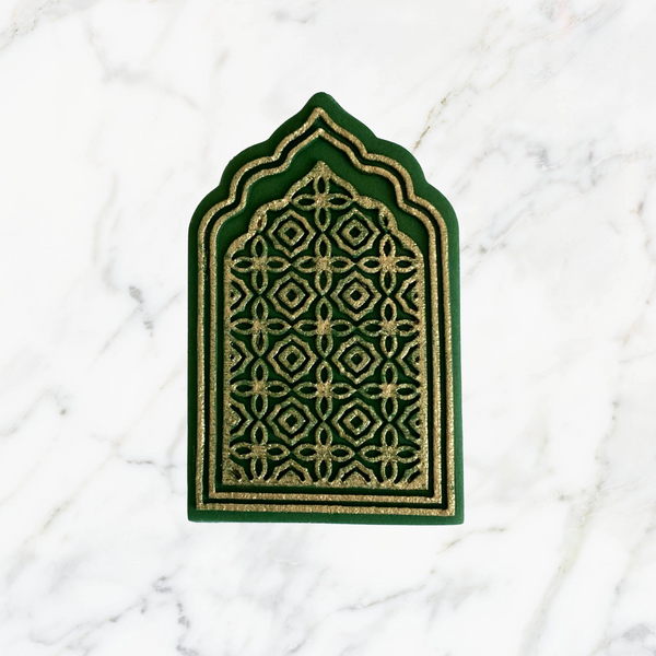 This cookie stamp and cutter set features a classic arched window shape with an intricate geometric pattern inspired by Islamic architecture. The detailed design creates a crisp, elegant impression on cookies, fondant, and sugar paste, making it perfect for Ramadan and Eid baking.