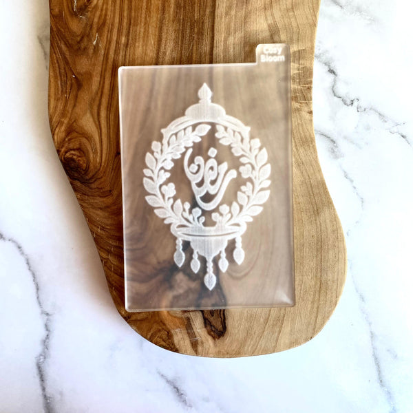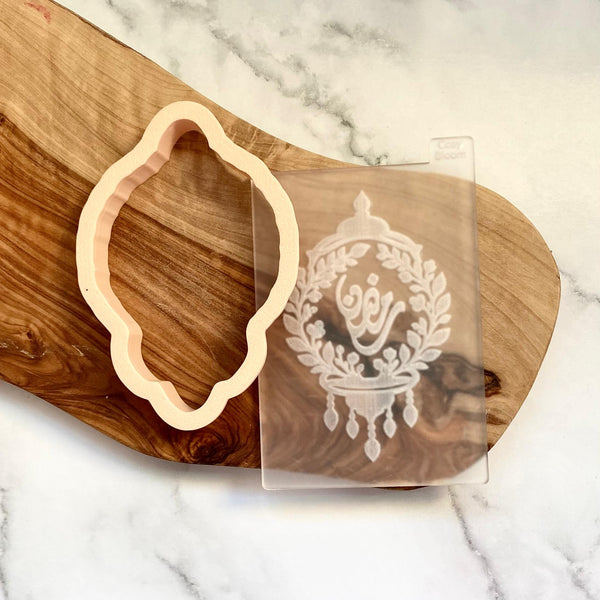 This Ramadan lantern cookie embosser features a delicate floral wreath and Ramadan Karem Arabic calligraphy, inspired by traditional lantern designs. It creates a beautiful raised pattern that feels elegant and meaningful, perfect for Ramadan baking and special Eid treats.